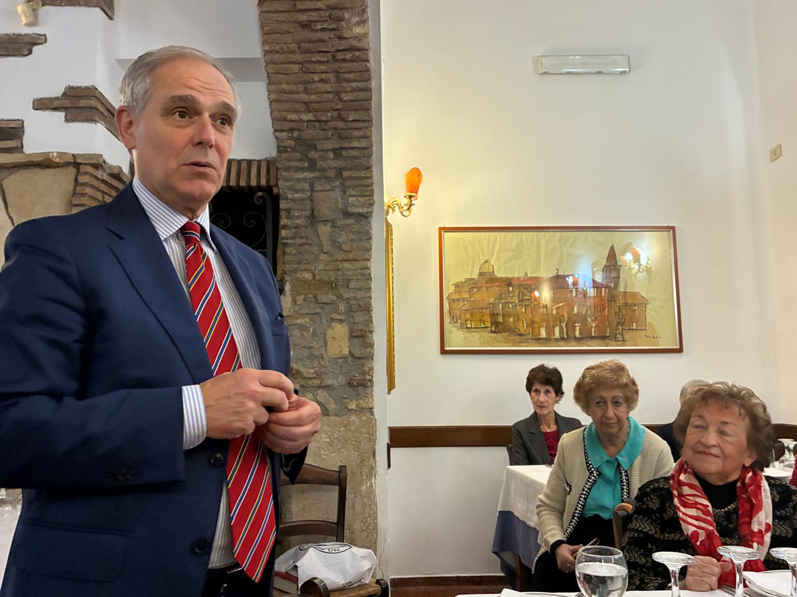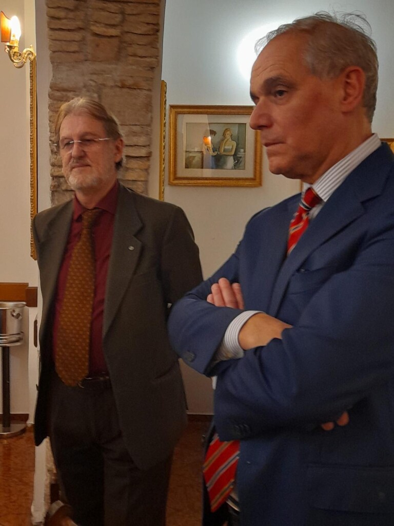 Ospite della serata, invitato dal Presidente Onorario Luisa Chiumenti, è stato il giornalista Stefano Ziantoni, attuale Responsabile di Rai Vaticano e conduttore del recente programma “Pellegrini di speranza” durante il Giubileo 2025. Lo stesso è stato anche per tanti anni giornalista di punta in Rai, in cui ha inizialmente condotto “Mixer” e “Uno Mattina”, quindi il TG1, prima come inviato speciale nei vari contesti internazionali (ricordiamo l’intervista in esclusiva mondiale di Yasser Arafat a Betlemme nel 1995 e l’imbarco sul Tornado italiano durante la guerra nella Ex Jugoslavia nel 1999), poi come conduttore della trasmissione “Terzo Millennio” durante il Giubileo del 2000; ancora, per la redazione politica, ha seguito le più alte cariche istituzionali dello Stato ed è stato corrispondente RAI a Parigi.